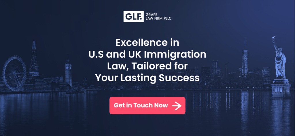 The Grape Law team is ready to help you analyze your eligibility and build a compelling investment case. Whether you are an entrepreneur or a global investor, we provide the clarity and strategic support needed to manage the complexities of U.S. immigration. For a well-rounded evaluation of your case, please contact us at info@grapelaw.com.