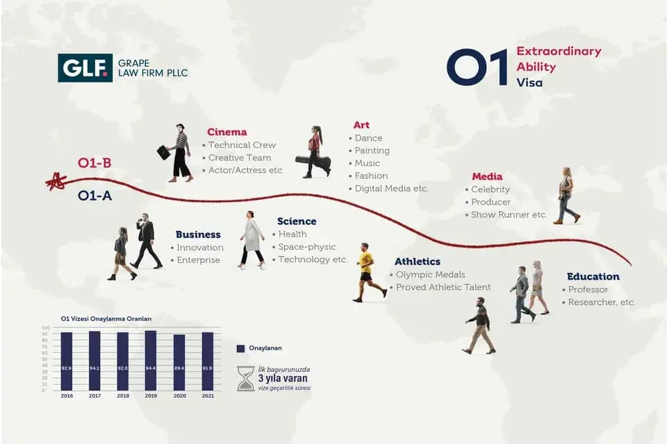 The O-1 visa is a work visa for individuals with extraordinary abilities or achievements in sciences, education, business, athletics, arts, cinema, and TV. USCIS (United States Citizenship and Immigration Services) defined extraordinary ability or achievement as a rare standard and particularly high above the average personal asset.
