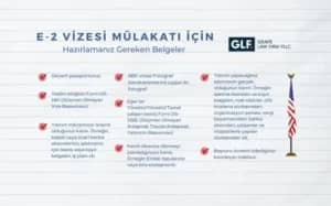 E-2 Yatırımcı Vizesi ile ilgili detaylı bilgi için E-2 Yatırımcı Vizesi Nedir, Kimler Başvurabilir? yazımızı okuyabilirsiniz. Ayrıca, E-2 Vizesi kabul koşulları ve başvuru süreciyle ilgili bilgilere web sitemizdeki ilgili sayfadan ulaşabilirsiniz.