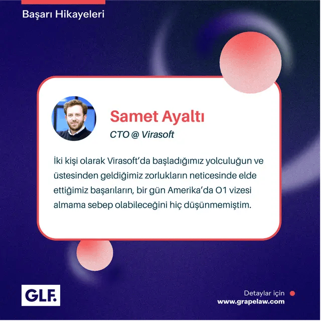 Grape Law olarak ekibimiz O-1, H-1B, E-2, E-1 ve L-1 vize uygulamaları gibi çeşitli ticari göçmenlik uygulamaları için kapsamlı ve proaktif hukuki hizmetler sunmaktadır. Samet Bey’in ABD’deki başarısının bir parçası olmaktan mutluluk duyuyor, daha nice başarılar diliyoruz! Hayallerinizin gücüne ve hizmetimizin profesyonelliğine inanıyoruz. Önemsiyoruz, çalışıyoruz, birlikte daha iyiye gidiyoruz!